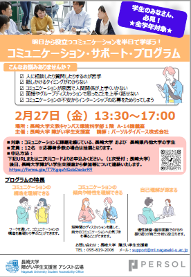 後日、長崎大学障がい学生支援室から参加等についてご連絡いたします。